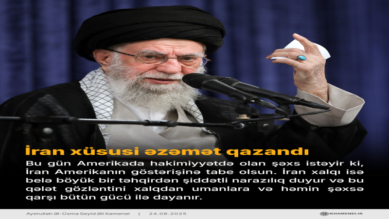 "Dünyada bir dövlət ortaya çıxıb ki, İranın böyük xalqının bütün şan-şöhrət ilə ona tabe olması intizarındadır. Amerikanın İranla düşmənliyi də buna görədir".