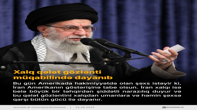 "Bu gün Amerikada hakimiyyətdə olan şəxs istəyir ki, İran Amerikanın göstərişinə tabe olsun. İran xalqı isə belə böyük bir təhqirdən şiddətli narazılıq duyur və bu qələt gözləntini xalqdan umanlara və həmin şəxsə qarşı bütün gücü ilə dayanır".