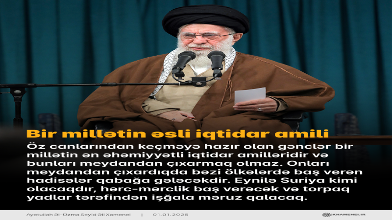 Öz canlarından keçməyə hazır olan gənclər bir millətin ən əhəmiyyətli iqtidar amilləridir və bunları meydandan çıxarmaq olmaz. Onları meydandan çıxardıqda bəzi ölkələrdə baş verən hadisələr qabağa gələcəkdir. Eynilə Suriya kimi olacaqdır, hərc-mərclik baş verəcək və torpaq yadlar tərəfindən işğala məruz qalacaq.