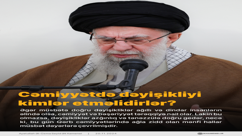 Əgər müsbətə doğru dəyişikliklər ağıllı və dindar insanların əlində olsa, cəmiyyət və bəşəriyyət tərəqqiyə nail olar. Lakin bu olmazsa, dəyişikliklər azğınlıq və tənəzzülə doğru gedər, necə ki, bu gün Qərb cəmiyyətlərində ağla zidd olan mənfi hallar müsbət dəyərlərə çevrilmişdir.