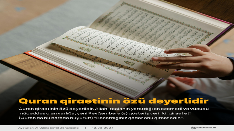 Quran qiraətinin özü dəyərlidir. Allah-təalanın yaratdığı ən əzəmətli və vücudu müqəddəs olan varlığa, yəni Peyğəmbərə (s) göstəriş verir ki, qiraət et! (Quran da bu barədə buyurur:) "Bacardığınız qədər onu qiraət edin".