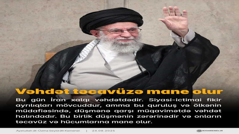 Bu gün İran xalqı vəhdətdədir. Siyasi-ictimai fikir ayrılıqları mövcuddur, amma bu quruluş və ölkənin müdafiəsində, düşmənə qarşı müqavimətdə vəhdət halındadır. Bu birlik düşmənin zərərinədir və onların təcavüz və hücumlarına mane olur.