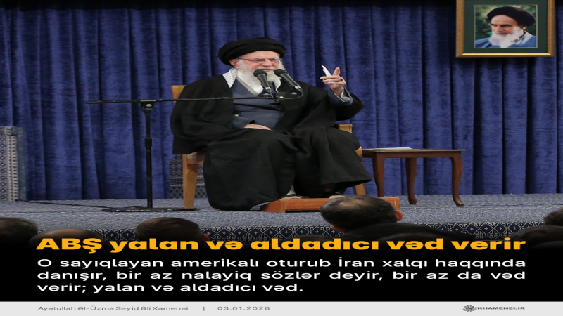 O sayıqlayan amerikalı oturub İran xalqı haqqında danışır, bir az nalayiq sözlər deyir, bir az da vəd verir; yalan və aldadıcı vəd.