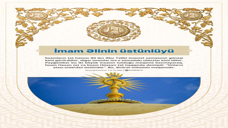 İmamların (ə) hamısı Əli ibn Əbu Talibi imamət səmasının günəşi kimi görürdülər, digər imamlar isə o səmadakı ulduzlar kimi idilər. Peyğəmbər bu iki böyük insanın tutduğu məqama baxmayaraq, İmam Həsən (ə) və İmam Hüseyn (ə) haqqında demişdi: “Onların atası onlardan üstündür”. Bu, Əmirəl-möminin məqamıdır.