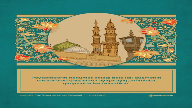 Peyğəmbərin hökumət əxlaqı belə idi: düşmənin vəsvəsələri qarşısında ayıq-sayıq, möminlər qarşısında isə təvazökar. Ayətullah Əl-Üzma Seyid Əli Xamenei 12.05.2000