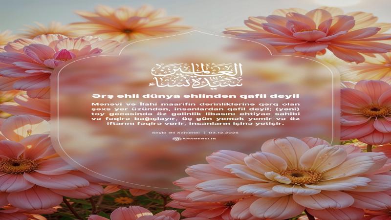 Mənəvi və İlahi maarifin dərinliklərinə qərq olan şəxs yer üzündən, insanlardan qafil deyil; (yəni) toy gecəsində öz gəlinlik libasını ehtiyac sahibi və fəqirə bağışlayır, üç gün yemək yemir və öz iftarını fəqirə verir, insanların işinə yetişir. Seyid Əli Xamenei 03.12.2025