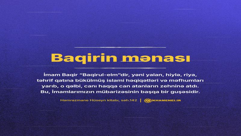 İmam Baqir “Baqirul-elm”dir, yəni yalan, hiylə, riya, təhrif qatına bükülmüş islami həqiqətləri və məfhumları yarıb, o qəlbi, canı haqqa can atanların zehninə atdı. Bu, İmamlarımızın mübarizəsinin başqa bir guşəsidir. Həmrəzmane Hüseyn kitabı, səh.142