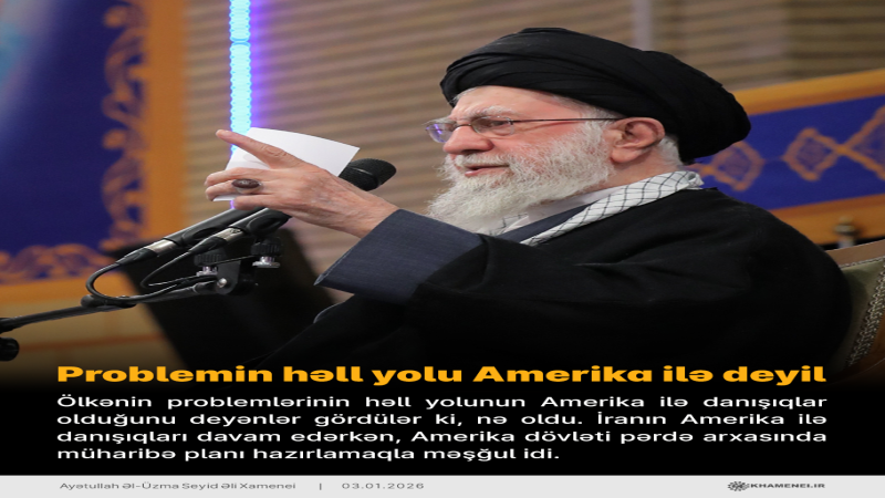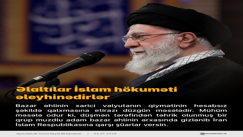 Bazar əhlinin xarici valyutanın qiymətinin hesabsız şəkildə qalxmasına etirazı düzgün məsələdir. Mühüm məsələ odur ki, düşmən tərəfindən təhrik olunmuş bir qrup muzdlu adam bazar əhlinin arxasında gizlənib İran İslam Respublikasına qarşı şüarlar versin. Seyid Əli Xamenei 03.01.2026