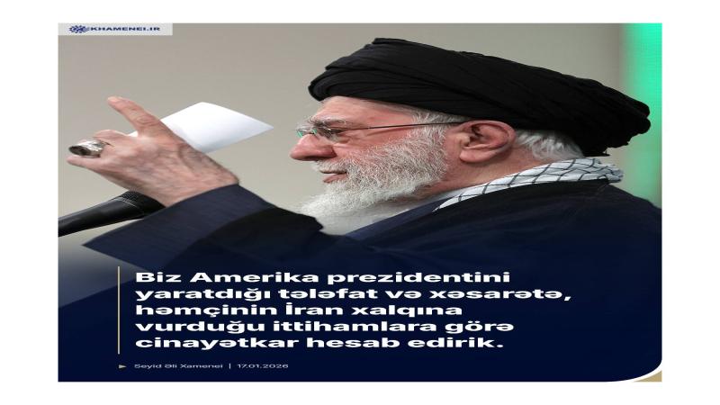 Biz Amerika prezidentini yaratdığı tələfat və xəsarətə, həmçinin İran xalqına vurduğu ittihamlara görə cinayətkar hesab edirik. Seyid Əli Xamenei 17.01.2026
