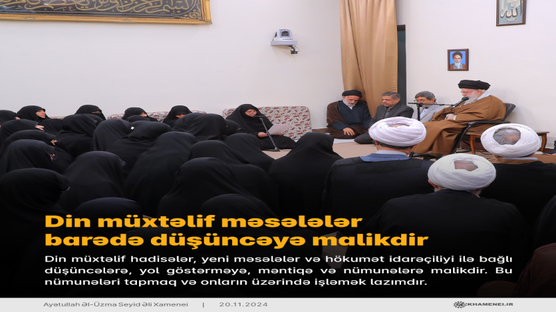 Din müxtəlif hadisələr, yeni məsələlər və hökumət idarəçiliyi ilə bağlı düşüncələrə, yol göstərməyə, məntiqə və nümunələrə malikdir. Bu nümunələri tapmaq və onların üzərində işləmək lazımdır.